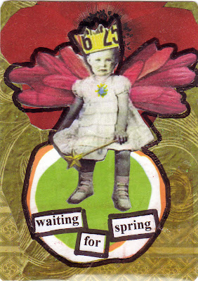I can't believe that its been a week since I have posted here in my little blog. I am feeling bad that I have ignored it for a week, but its been a busy one at work. When the weather turns nice and spring has sprung, well, my kids at work decide its time to bail on school and have fun. Can't say as I blame them, I want to do the same thing, lol. It certainly has felt very springy this week. Temps have been in the 60s and 70s and sunny every day. So when I get home,,I am out playing in the flower beds or just chillin in my pond zone. Can't bring myself to stay inside after being inside all day on a computer. So if I am missing in action during this time of year that is the reason. The back is finally hurting less but still taking it easy on doing alot of bending. Thats hard to do when I have alot of flower beds that are begging for attention. I just get my handy dandy cart and sit and roll on it and clean out the beds and talk to the flowers.On my last post I spouted out that I was going to do a contest and I am still going to do it. My I think I am going to wait and combine it with Lisa from "Heart of the nest" One Heart-One Art" event. Its just a little simple contest, but it will be easier on me to do it then as I am will be on a wonderful Springbreak that week. OH I can't wait,,just one more week of work and then off for a week YAY!!!I have did make a new artsy project last sunday. I joined my friend Dotee's doll swap as I just think they are so cute and had to give it a shot. So of course I had to make one to see if I actually have any talent in making the Dotee Dolls. So here is my very first Dotee Doll.